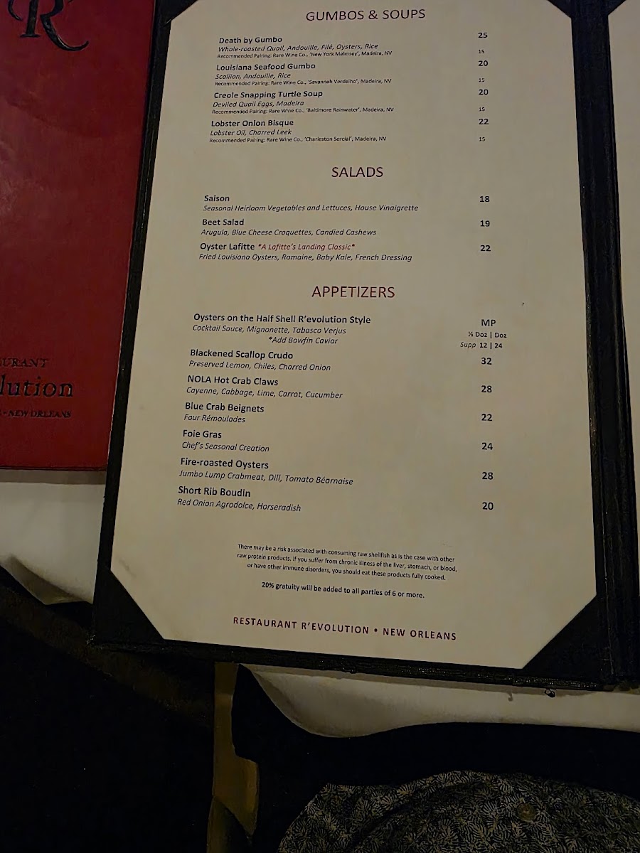 The Restaurant R'evolution Menu offers an unforgettable dining experience in the heart of New Orleans at 777 Bienville St. From the moment you sit down, you’re greeted with a menu that celebrates the rich flavors of the city while embracing innovative culinary techniques. Whether you're in the mood for traditional Southern dishes or contemporary twists on classic favorites, the menu promises to satisfy every palate.
